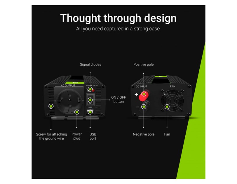 Green Cell strujni inverter 12V na 230V, 500W/1000W (INV03DE)