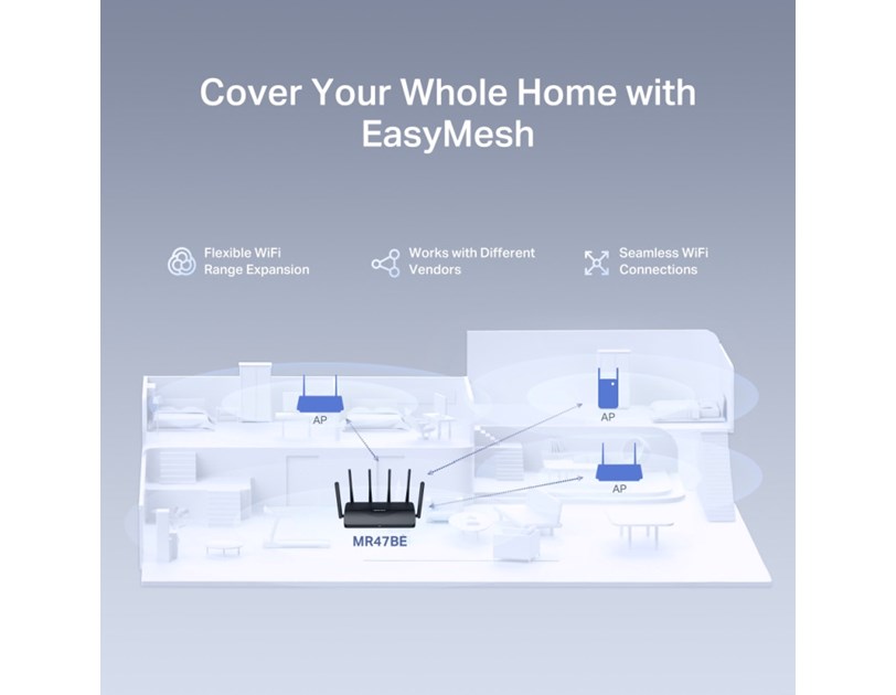 - EasyMesh-Compatible: Works with EasyMesh routers and range extenders to form seamless whole home Mesh WiFi, preventing drops and lag when moving between signals.