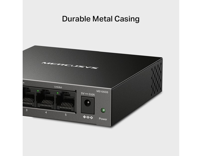 Mercusys MS105GS 5-Port Gigabit Desktop preklopnik (Switch) 5×10/100/1000Mbps, Plug & Play, Auto-Negotiation, Auto-MDI/MDIX, metalno kućište