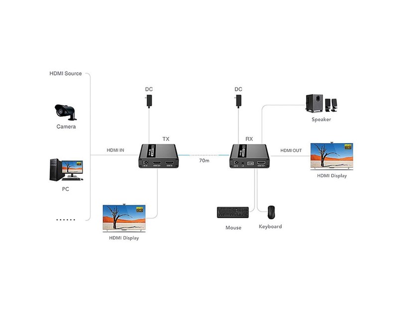 • Priključci na prijemniku (RX): Monitor: 1× HDMI; 1× RJ-45 utikač, 2× USB tip A utikač, 1× 3.5mm audio utikač