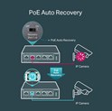 - 4 of the 5 Auto-Negotiation RJ45 ports (Port 1 to Port 4) of the switch support Power over Ethernet (PoE) function
