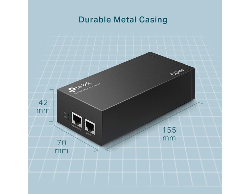 TP-Link PoE++ Injector Adapter, 1×Gbit PoE Port, 1×Gbit Non-PoE Port, 802.3at/af/bt, Data+Power po istom kablu do 100m, metalno kućište