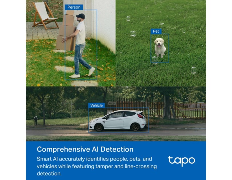 - Smart AI identifies people, pets, and vehicles, notifying users as needed.