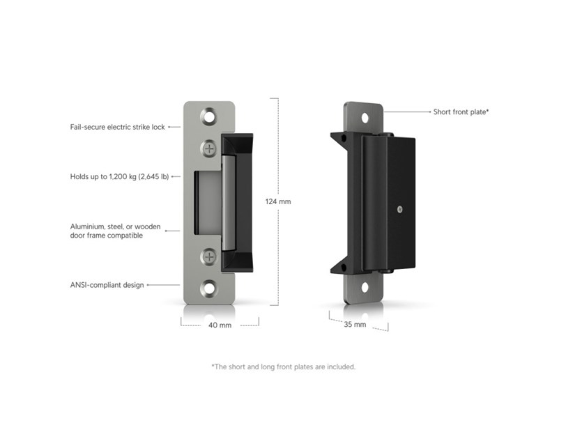 - Fail-secure electric strike lock that connects to a UniFi Access Hub.