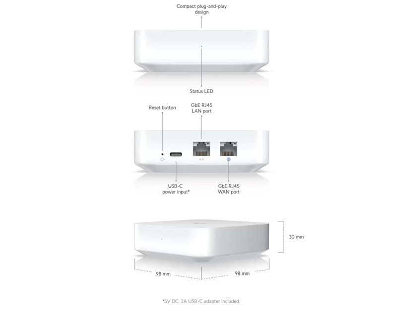 UXG-Lite UniFi gateway, 1x GbE WAN port, 1xGbE LAN port, USB-C,